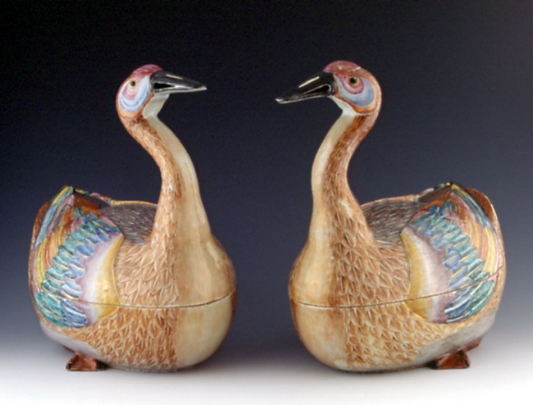 As peças quase todas destinadas à mesa permitem-nos abordar os hábitos alimentares do século XVIII e questionar a origem de alguns dos protótipos que lhe serviam de inspiração. Entre terrinas, pratos, travessas, saleiros, manteigueiras, peixeiras, bules, cestos para fruta, garrafas, refrescadores para copos e garrafas, entre outras, são de realçar as coloridas terrinas em forma de ganso, inspiradas em protótipos de Estrasburgo, Höchst, Delft, Chelsea e Lisboa. São de realçar na senda da porcelana armoriada do século XVI, as peças de serviços brasonados atribuídos a António de Sousa Falcão de Saldanha José Coutinho, Pamplona Carneiro Rangel Baldava de Tovar a Joaquim Inácio da Cruz Sobral e ainda a terrina, com sua travessa decorada com a estátua equestre de D. José I, que integrou o serviço onde foi servido o jantar organizado pela Casa dos Vinte e Quatro aquando da inauguração da estátua, 20 anos após o terramoto de 1755, e uma manteigueira com a deusa Juno segurando o medalhão com os retratos e busto de D. Maria I e seu marido D. Pedro III.